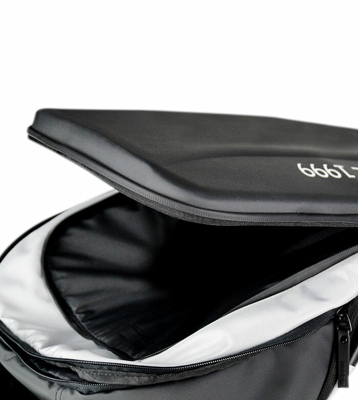 Le sac à dos World est conçu avec une structure semi-rigide qui offre deux compartiments séparés pour les vêtements et les accessoires.